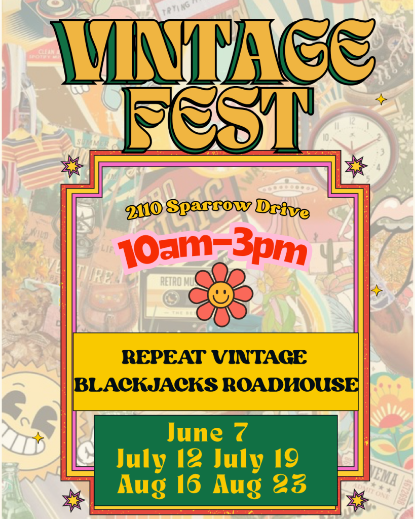 Repeat Vintage is bringing something big to life this summer with Vintage Fest at Blackjack’s Roadhouse. Think rows of incredible vendors, one of a kind vintage finds, and that perfect mix of old school charm and western energy you can’t fake. This isn’t your average market. It is a full experience built for people who love timeless style, rare pieces, and a good day out with great people.