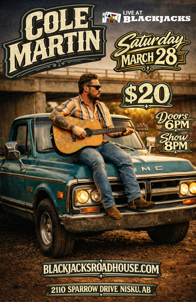 Cole Martin is back on the Blackjacks stage on Saturday, March 28, and if you were here in 2024, you already know what that means — strong vocals, tight musicianship, and a full room singing along by the second chorus.